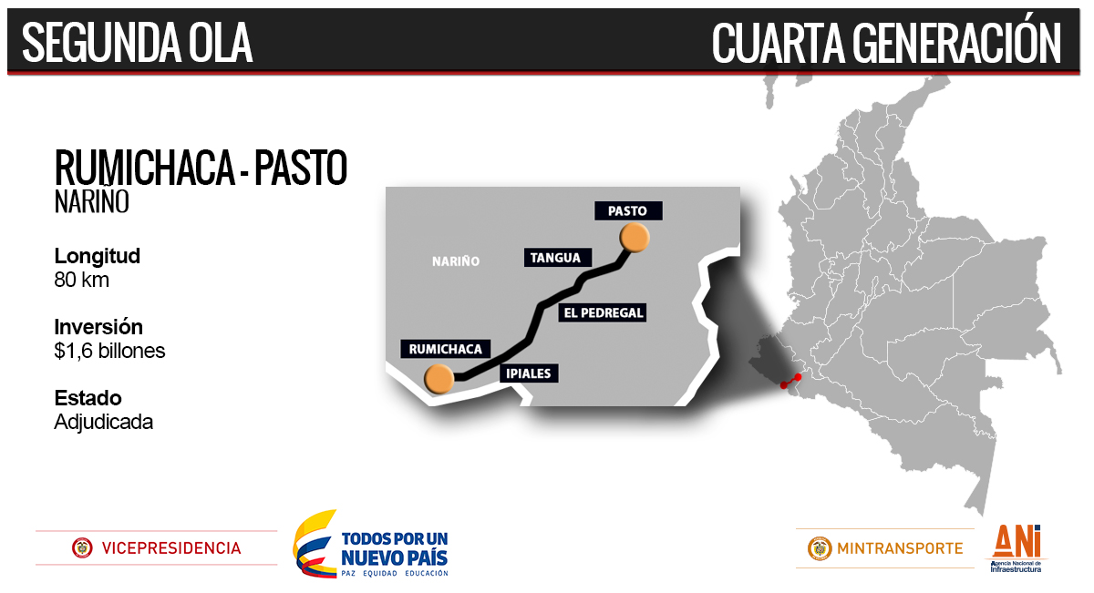 Las obras que unirán los puntos de Rumichaca, Pupiales, Gualmatán, Ipiales, Iles, El Pedragal, Funes y Pasto, también incluyen la construcción de las variantes de Ipiales, Las Cruces, San Juan y Pedregal.