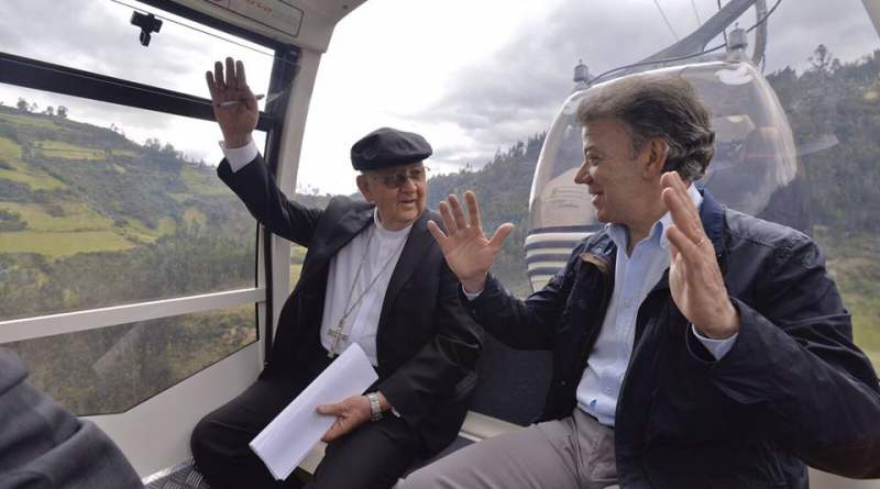 Hacia la 1:30 de la tarde Juan Manuel Santos, junto con el gobernador de Nariño Raúl Delgado Guerrero, se trasladó en un vehículo que fue conducido por el presidente hasta el corregimiento de Las Lajas donde junto al Obispo de la Diócesis de Ipiales, Arturo Correa Toro se transportaron en el nuevo teleférico hasta el Santuario de Nuestra Señora de Las Lajas.