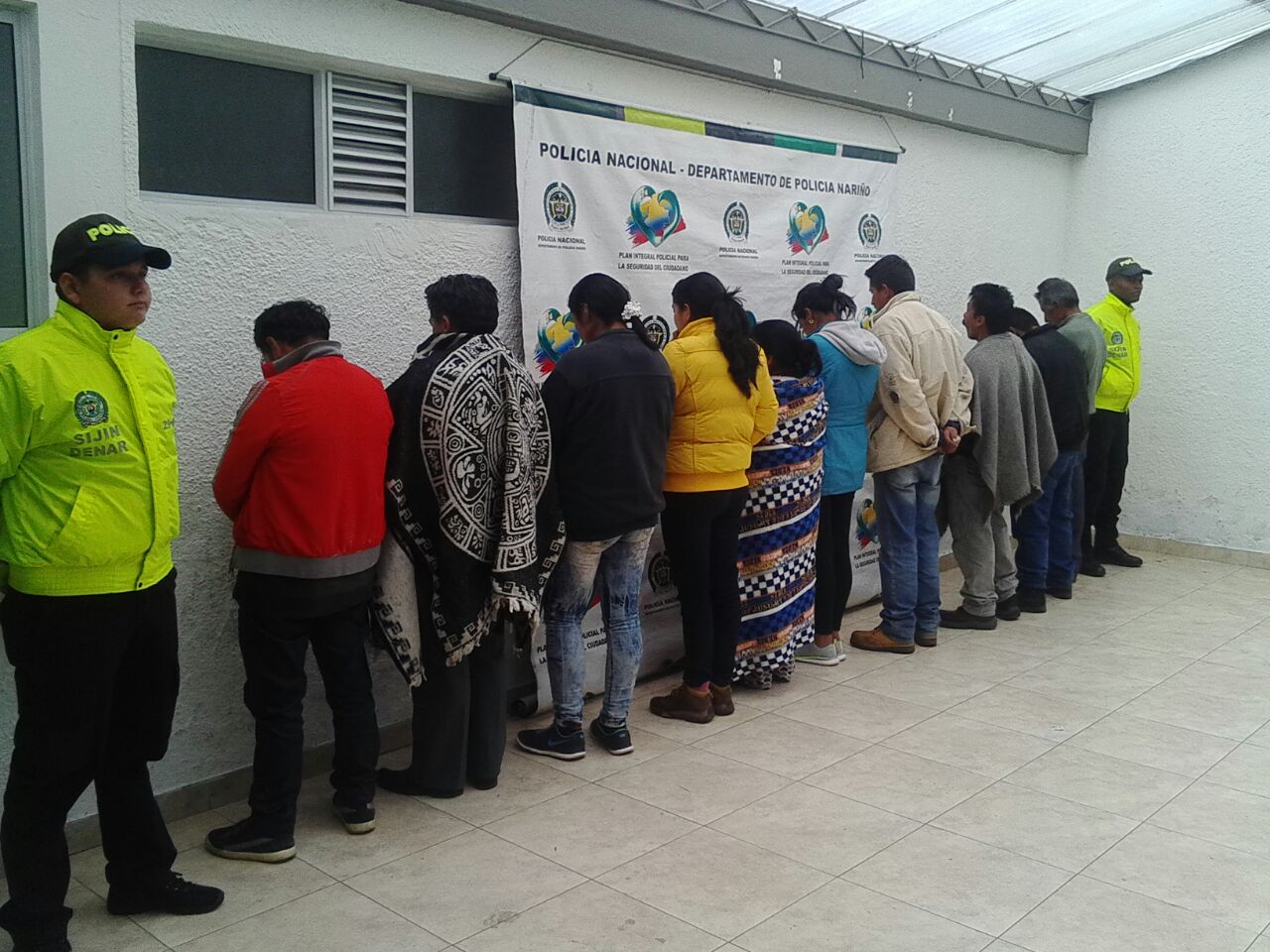 En el despliegue de la Estrategia Institucional en Contra del Contrabando y a través de actividades de registro y allanamientos a 10 inmuebles ubicados en los barrios, Jaime Bateman, El Charco, Simón Bolívar y Las Cruces, la Seccional de Investigación Criminal Nariño, logró la captura de alias “Yandún”, alias “Polivio”, alias “Pistala”, alias “Ana”, alias “Janeth”, alias “Chucho”, alias “Viviana” alias “Charfuelán”, alias “Javier”, alias “Jenny” y alias “Rosa”, quienes estaban solicitados por la Fiscalía 15 Local de Ipiales por el delito de favorecimiento al contrabando de hidrocarburos o sus derivados.