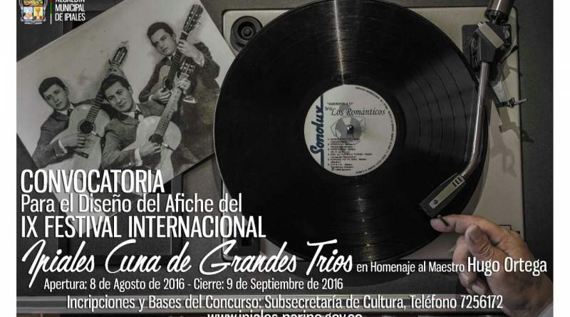 Diseñadores, ilustradores, dibujantes, artistas, publicistas y creativos de nacionalidad colombiana, mayores de 16 años, podrán presentar sus propuestas para el afiche promocional del IX Festival Internacional “Ipiales Cuna de Grandes Tríos”.