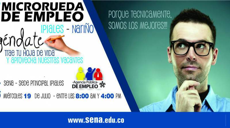 Este miércoles 19 de Julio, la Agencia Pública del Sena en Ipiales realizará la cuarta microrueda de empleo, con el