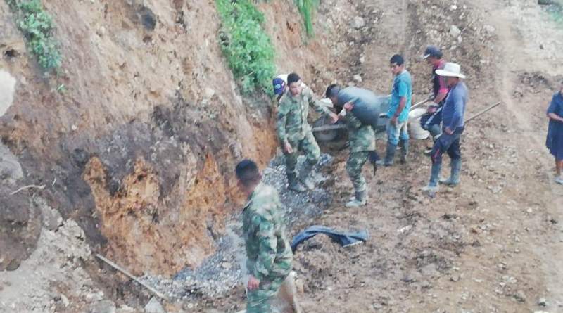 El batallón de ingenieros No. 23 Agustín Angarita Niño, adelanta trabajo de adecuación de vías terciarias en la vereda Tallambi del municipio de Cumbal.
