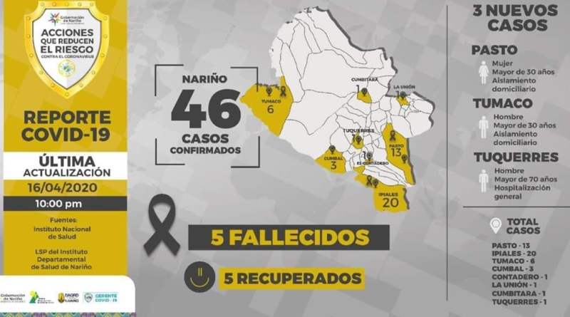 Leer másEl Laboratorio de Salud Pública y el Instituto Nacional de Salud reportan 3 casos más positivos para COVID-19 en Nariño.