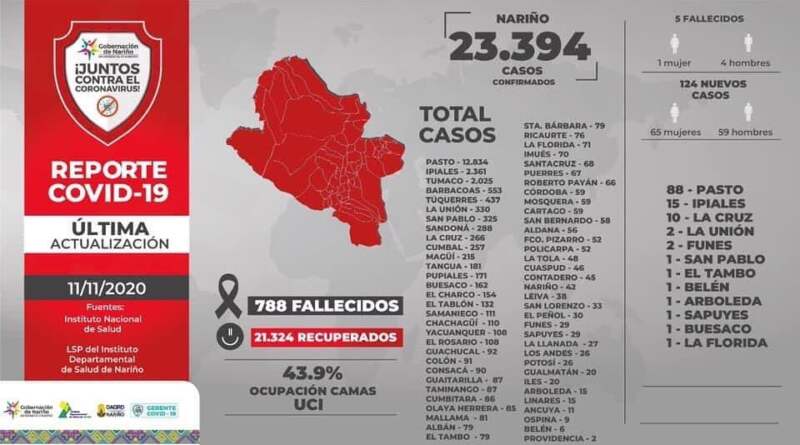 Leer másEl Instituto Departamental de Salud de Nariño reportó este 11 de noviembre de 2020. Hoy se reportan 124 nuevos casos