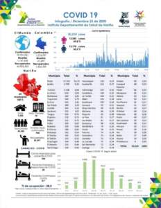 El Instituto Departamental de Salud de Nariño IDSN, se permite informar que a través del Sistema de Vigilancia Epidemiológica Intensificada de Lesiones por Pólvora Pirotécnica, en el departamento de Nariño a 25 de diciembre de 2020 (corte a las 6:00 pm) se tiene un acumulado de 17 personas lesionadas (16 hombres y una mujer).