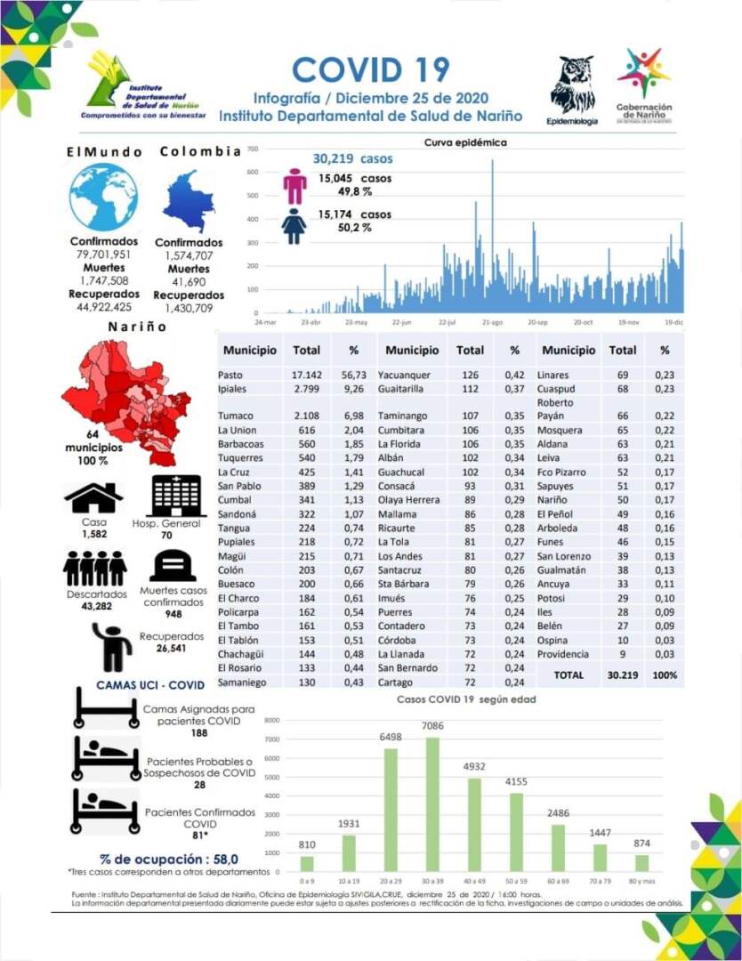 948 muertes se han registrado en Nariño por Covid-19