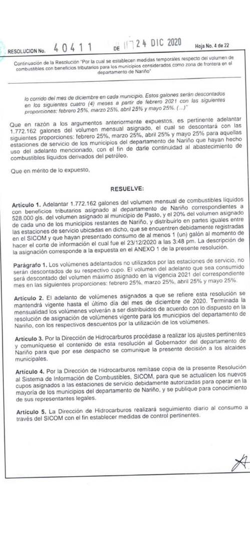 Para evitar la escasez de combustible en época de Navidad, fin de año e inicio de año nuevo en el departamento de Nariño, el gobernador de Nariño informó que gestionó ante el Ministerio de Minas, el anticipo del cupo de combustibles.