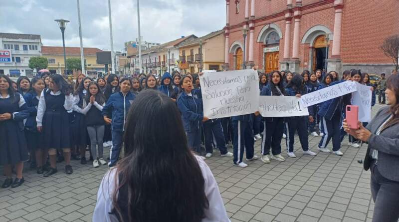 Estudiantes y docentes de la institución educativa San Francisco de Asís, protestaron frente a la alcaldía municipal ante la tardanza en nombramiento de cuatro docentes.
