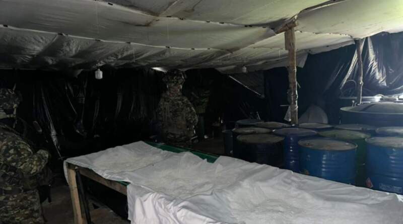 Durante el desarrollo de la operación, las tropas hallaron un complejo compuesto por múltiples subestructuras artesanales que utilizaban para el procesamiento, acopio y transformación del alcaloide, así como una significativa cantidad de insumos sólidos y líquidos, equipos industriales y más de una tonelada de clorhidrato de cocaína, lo que evidencia la alta capacidad logística y productiva de esta estructura ilegal.