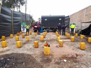 En el marco de la estrategia contra el contrabando, la Policía Fiscal y Aduanera, mediante diligencia de allanamiento y registro en el sector las Cruces, efectuó la captura de cuatro ciudadanos y la aprehensión de 200 galones de ACPM de procedencia extranjera y dinero en efectivo por un valor de $ 7.924.000.