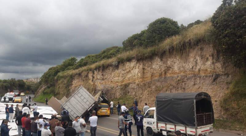 Bomberos Ipiales, atendió un accidente de tránsito, en la vía perimetral, donde colisión un tractocamión con un taxi.