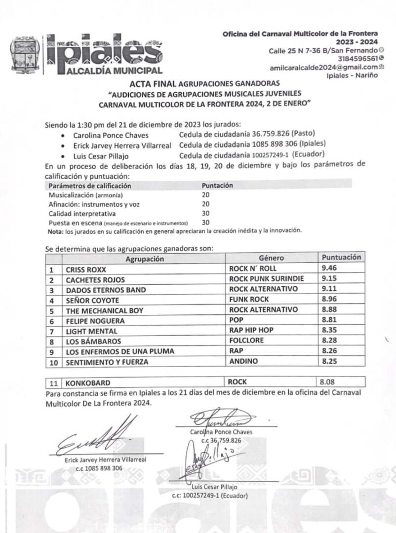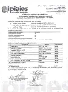 Finalizada las presentaciones las agrupaciones elegidas son: